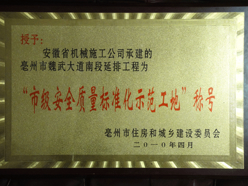 4月9日,亳州市建委與建協(xié)在市委黨校為2009年度市級優(yōu)質(zhì)工程“芍花杯”與市級“安全質(zhì)量標(biāo)準(zhǔn)化示范工地”舉行隆重的頒獎儀式。我公司2008~2009年度承建的希夷大道南延道排工程與魏武大道南延道排工程雙雙獲得市優(yōu)“芍花杯”,是本獎項(xiàng)中僅有的兩個市政工程,魏武大道工程獲得亳州市首個市政工程示范工地稱號。市建委總工胡常穎發(fā)表重要講話,并對我公司幾年來為亳州的建設(shè)事業(yè)所做的貢獻(xiàn)給予充分肯定與感謝。