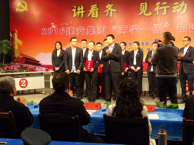 12月2日,建安集團(tuán)“講看齊,見行動”兩學(xué)一做知識競賽決賽在亳州電視臺舉行,建工黨支部代表隊(duì)力挫群雄,最終獲得二等獎。