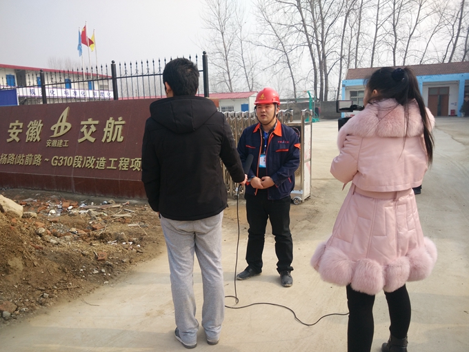 1月11日上午,蕭縣電視臺采訪小組到安徽交航蕭縣蕭楊路(站前路-G310段)工程項目經(jīng)理部施工現(xiàn)場進(jìn)行新聞采訪,就該項目工地標(biāo)準(zhǔn)化建設(shè),施工進(jìn)展、工程重難點等進(jìn)行拍攝、采訪。項目經(jīng)理徐鑫接受記者采訪,并詳細(xì)介紹該項目工程概況和目前施工情況。