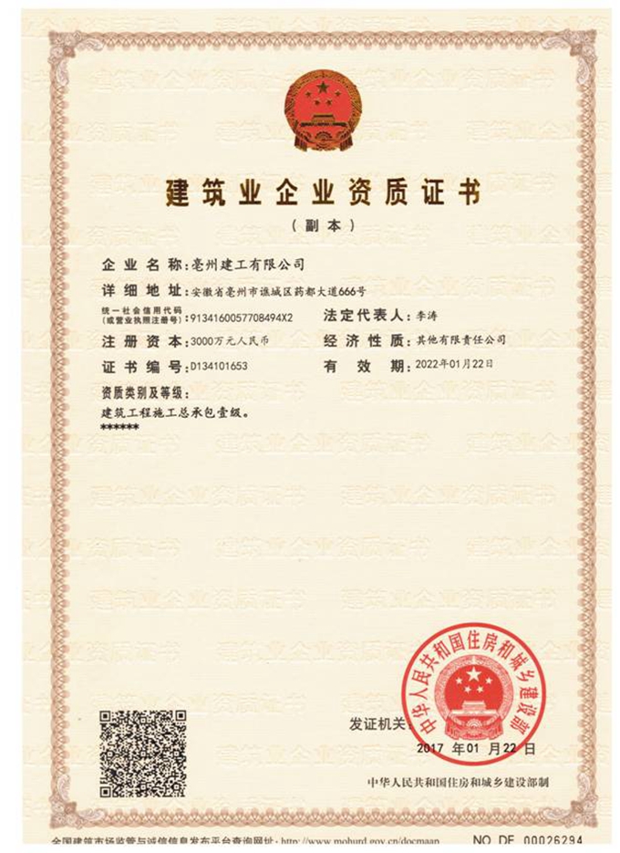 近日,經(jīng)省住建廳初審、住建部專家認(rèn)真評審公示公告后,亳州建工有限公司成功晉升“建筑工程施工總承包壹級資質(zhì)”,實(shí)現(xiàn)了企業(yè)施工總承包資質(zhì)水平的提升,為企業(yè)實(shí)現(xiàn)“十三五規(guī)劃發(fā)展目標(biāo)”奠定堅(jiān)實(shí)基礎(chǔ)。