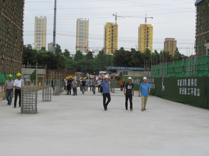 觀摩人員一路邊聽邊記,并對現(xiàn)場結(jié)實整潔的防護欄、防護棚、人行通道,精致干凈的梁柱、樓板、外墻,整齊顯眼的警示標語、材料標識連連稱贊,表示要向亳州建工認真學習項目建設(shè)經(jīng)驗,向亳州建工看齊。