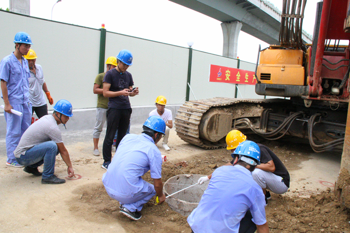 當(dāng)日上午,業(yè)主代表及第三方單位一行人到場檢查指導(dǎo)安徽交航公司承建的潛口路站首根樁基成孔工作。項(xiàng)目測量組對首根樁位進(jìn)行精確放樣,并對鉆機(jī)鉆桿進(jìn)行垂直度矯正。9點(diǎn)28分,鉆機(jī)啟動,在項(xiàng)目各部門有序配合下。歷時1小時20分鐘順利成孔。