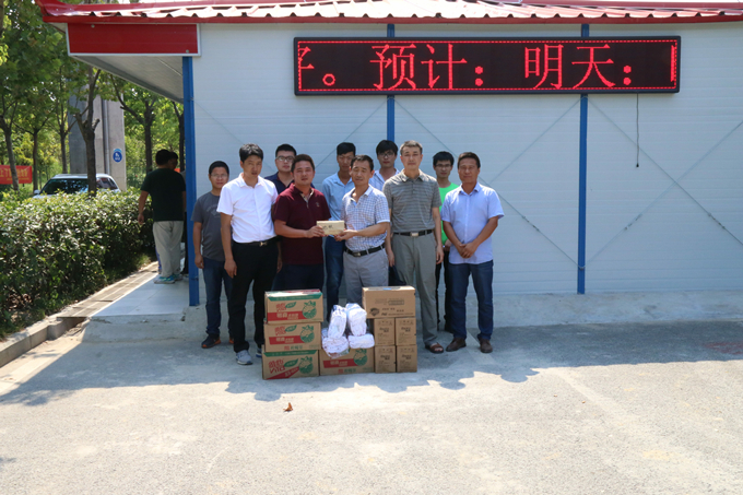 驕陽似火,酷暑難當,公司領導心系職工,由李書記和侯總帶隊,深入地鐵項目施工生產一線,向全體職工發(fā)放了清涼飲料、防暑藥品和夏季生活用品,并對職工表示慰問,希望大家在搶工期的熱潮中要做好暑期安全工作。