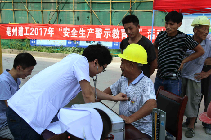 為體現(xiàn)公司對一線操作工人的關(guān)注與關(guān)懷,進(jìn)一步提高項(xiàng)目操作工人的自我保護(hù)意識,助力項(xiàng)目的安全生產(chǎn),按照公司安全生產(chǎn)警示教育月活動安排,8月17日,亳州建工組織開展了操作工人免費(fèi)健康體檢活動。
