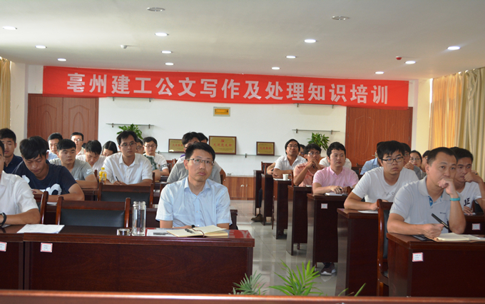 為進(jìn)一步提升全體職工公文寫作水平和能力,提高員工的業(yè)務(wù)素養(yǎng),強(qiáng)化公文寫作規(guī)范意識,亳州建工于9月15日開展了公文寫作及處理知識培訓(xùn)。特別邀請亳州市政府辦公室文秘科彭鵬進(jìn)行授課,機(jī)關(guān)各部門全體員工、各項目部負(fù)責(zé)人及項目負(fù)責(zé)文字資料等相關(guān)人員參加了培訓(xùn)。