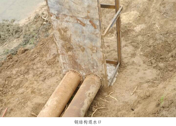 鋼結(jié)構(gòu)退水口。傳統(tǒng)拋泥區(qū)退水口為磚結(jié)構(gòu),通過涵管排水,這種方式不僅成本高,而且涵管銜接處會有滲水的風(fēng)險(xiǎn)。在本項(xiàng)目中,我部工程人員提出設(shè)想將退水口設(shè)計(jì)成鋼結(jié)構(gòu),并在實(shí)際工程中試驗(yàn)成功。鋼結(jié)構(gòu)的退水口不僅可以規(guī)避滲水的風(fēng)險(xiǎn),由于鋼結(jié)構(gòu)可以重復(fù)使用,所以大大降低了成本同時(shí)也達(dá)到了環(huán)保的效果。