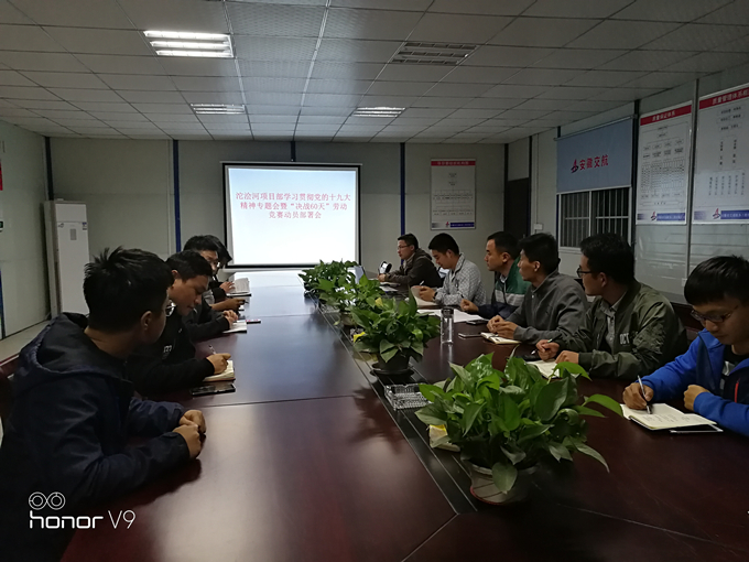11月11日,沱澮河項目部召開了學習貫徹黨的十九大精神第二次會議暨“決戰(zhàn)60天”動員部署會。會議由支部副書記主持,項目部全體工作人員參會。