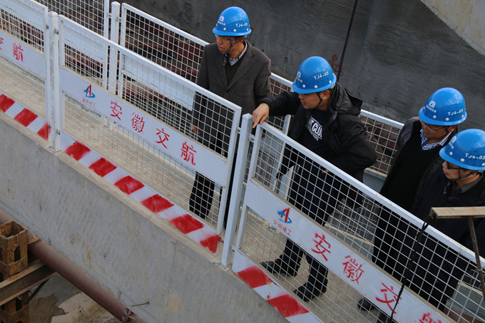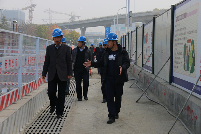 2017年11月28日上午,集團公司黨委委員、副總經(jīng)理王厚良一行在安徽交航副總經(jīng)理劉朝發(fā)等相關(guān)領(lǐng)導陪同下,蒞臨合肥市軌道交通4號線03標潛口路站項目調(diào)研工作。