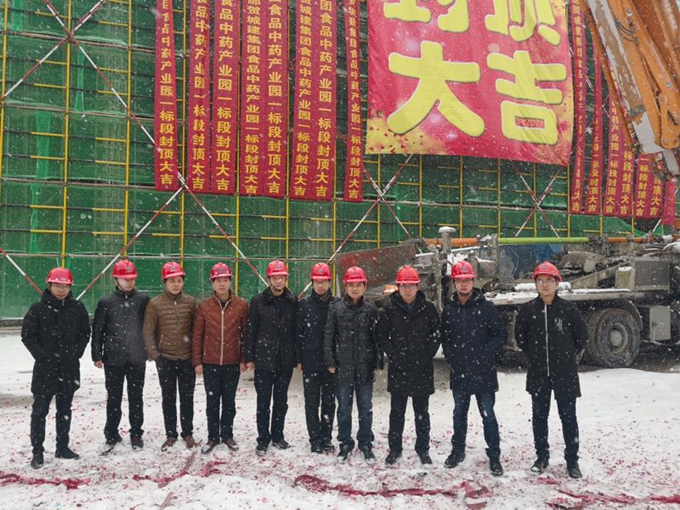雪花紛飛、禮花齊放、鞭炮齊鳴,1月25日上午10時08分,由亳州建工承建的城建集團食品中藥產(chǎn)業(yè)園項目一標(biāo)段封頂儀式隆重舉行,公司副總經(jīng)理劉軍、胡志友及項目各參建方共同見證封頂時刻。