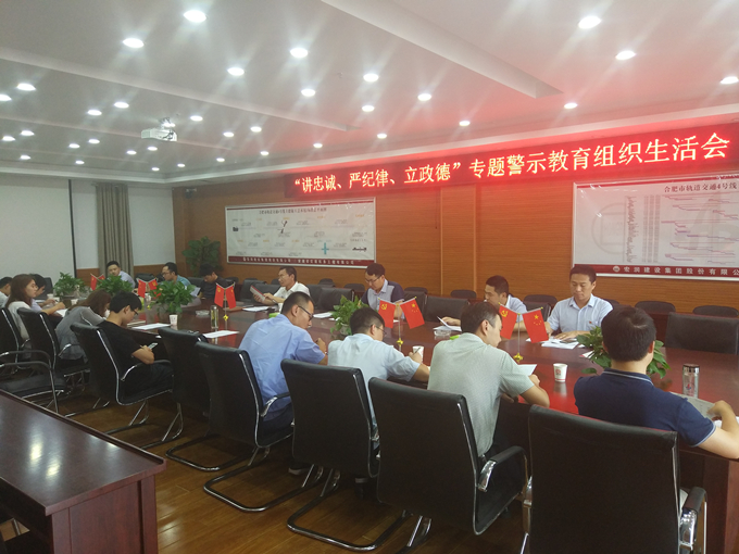 根據(jù)公司黨委統(tǒng)一部署,6月20日,合肥軌道交通4號線TJ03標聯(lián)合黨支部召開“講忠誠、嚴紀律、立政德”專題警示教育組織生活會。會議由支部書記翁厚洋主持。