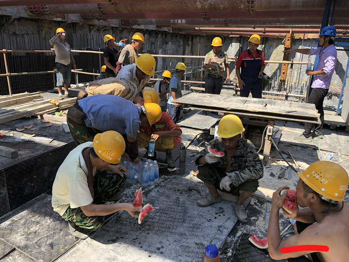 入夏以來,合肥地區(qū)氣候悶熱,廣大職工、協(xié)作隊伍民工兄弟冒酷暑、頂烈日,堅持奮戰(zhàn)在建設工地上。項目部為確保高溫作業(yè)人員的身體健康,合理調(diào)整了現(xiàn)場作業(yè)人員的作息時間,并投入資金購買了大量的防暑降溫物品,加強安全宣傳,進行防中暑及應急演練,并設立飲用點,每天供應綠豆湯,西瓜及鹽汽水,保障民工權益,降低中暑風險。同時囑托大家在夏季施工過程中,一定要注意身體,切莫中暑,感謝大家在這么艱苦的條件下為項目作出的貢獻。