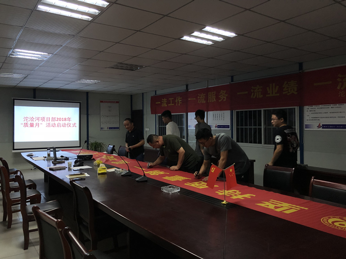 為積極落實(shí)公司2018年“質(zhì)量月”活動(dòng)的相關(guān)要求,提升全員質(zhì)量意識(shí),努力營(yíng)造安徽交航“質(zhì)量月”良好氛圍,9月7日,沱澮河項(xiàng)目部召開2018年“質(zhì)量月”活動(dòng)啟動(dòng)會(huì)。