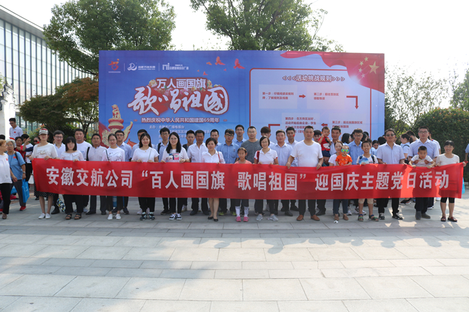 為熱烈慶祝祖國六十九周年華誕,9月15日上午,安徽交航公司黨委聯(lián)合濱湖地區(qū)區(qū)域化黨建聯(lián)盟理事會,在濱湖萬達(dá)臉譜廣場開展了“百人畫國旗 歌唱祖國”迎國慶主題黨日活動。
