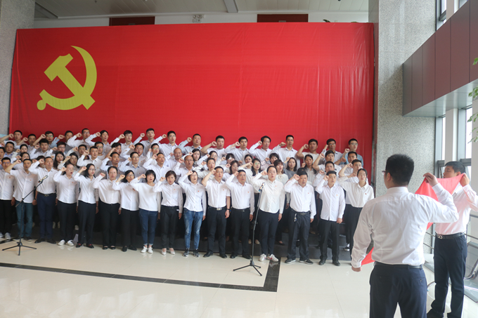 動(dòng)員講話結(jié)束后,機(jī)關(guān)全體員工以飽滿的熱情、嘹亮的歌聲高唱《我宣誓》,并集體表態(tài)“不忘初心齊奮進(jìn),牢記使命我先行”,在一片熱烈的掌聲中,迎“七一”系列活動(dòng)正式拉開了帷幕。