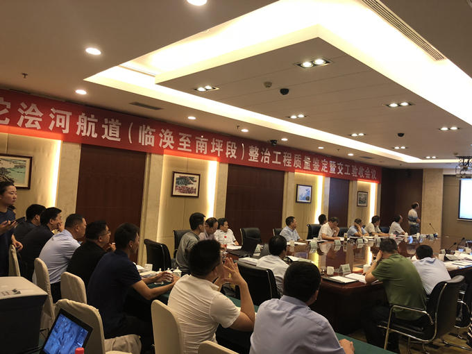 2019年7月13日上午,沱澮河航道(臨渙至南坪段)整治工程召開質(zhì)量鑒定及交工驗(yàn)收會,由省質(zhì)監(jiān)局、省海事局、淮北市質(zhì)監(jiān)局、淮北市交通運(yùn)輸局、淮北市水務(wù)局、濉溪縣交通運(yùn)輸局、濉溪縣水務(wù)局等單位的領(lǐng)導(dǎo)、專家組成的質(zhì)量鑒定驗(yàn)收組進(jìn)行評審,公司副總經(jīng)理侯力參加會議。