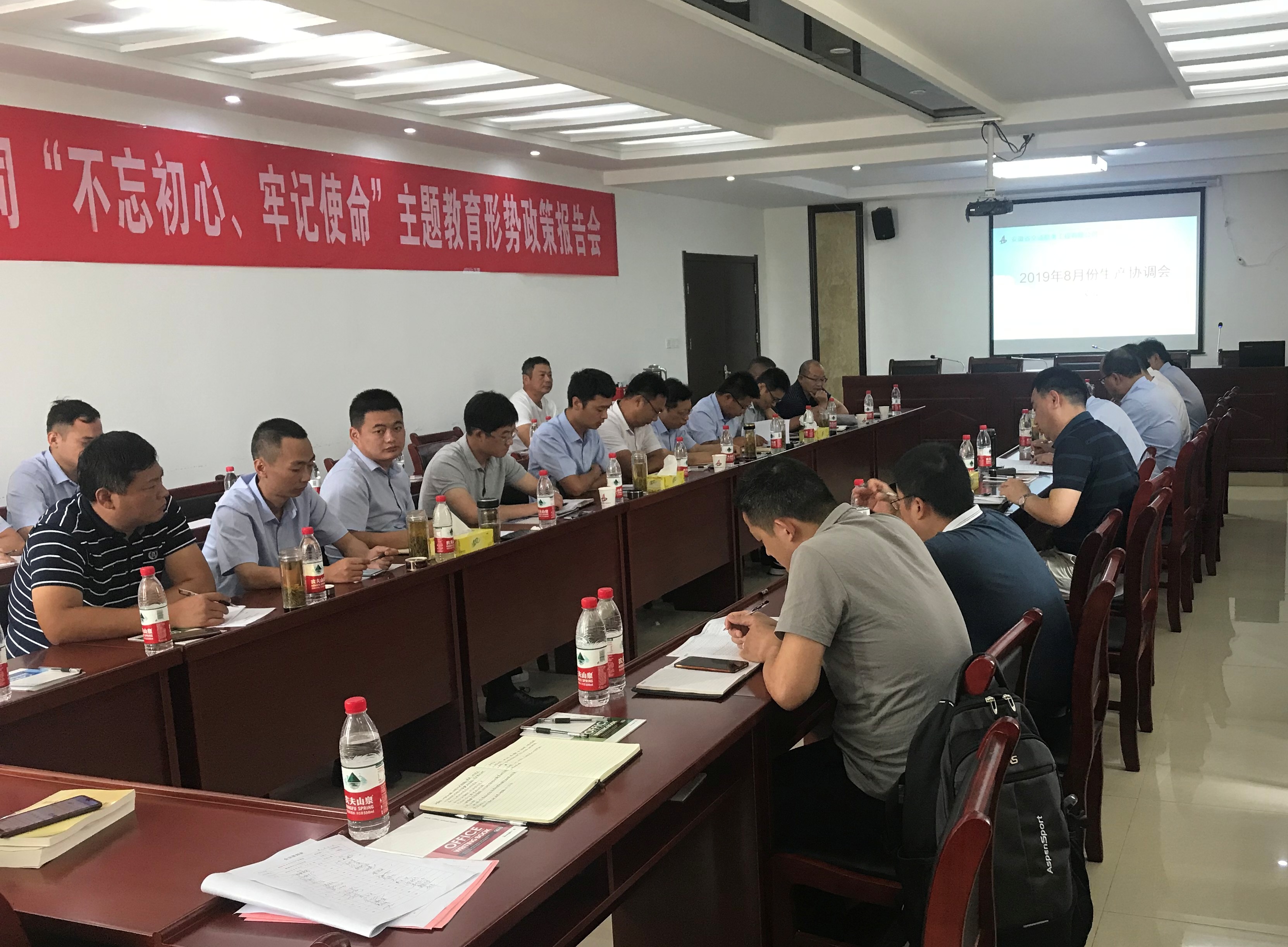 公司8月份生產(chǎn)進(jìn)度協(xié)調(diào)會于2019年8月9日在蒙城項目公司召開,會議由生產(chǎn)總調(diào)度、工管部主任周和友主持,公司黨委副書記、總經(jīng)理方申柱、生產(chǎn)副總經(jīng)理劉朝發(fā)、機(jī)關(guān)相關(guān)部門、分公司、各項目公司、項目部等主要負(fù)責(zé)人參加會議。