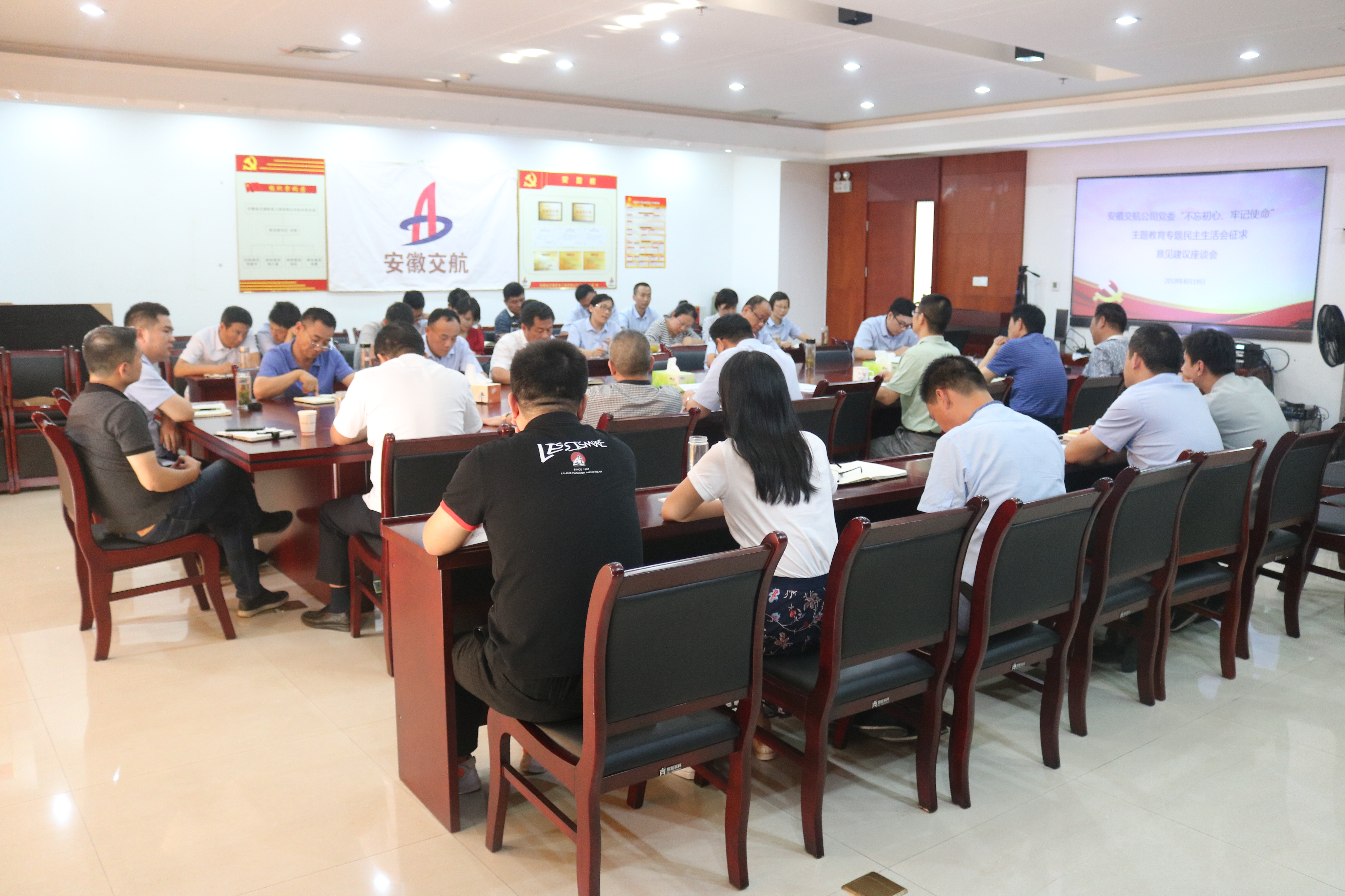 根據(jù)“不忘初心、牢記使命”主題教育部署安排,8月19日下午,安徽交航公司黨委在9樓會(huì)議室召開(kāi)“不忘初心、牢記使命”主題教育民主生活會(huì)征求意見(jiàn)建議座談會(huì),聽(tīng)取廣大黨員干部和職工對(duì)公司領(lǐng)導(dǎo)班子在主題教育方面的意見(jiàn)和建議,確保民主生活會(huì)開(kāi)出高質(zhì)量、好效果。黨委副書(shū)記、總經(jīng)理方申柱主持會(huì)議,公司黨政領(lǐng)導(dǎo)班子成員,機(jī)關(guān)各部門(mén)、在肥子分公司、項(xiàng)目部負(fù)責(zé)人及部分職工代表參加了會(huì)議。