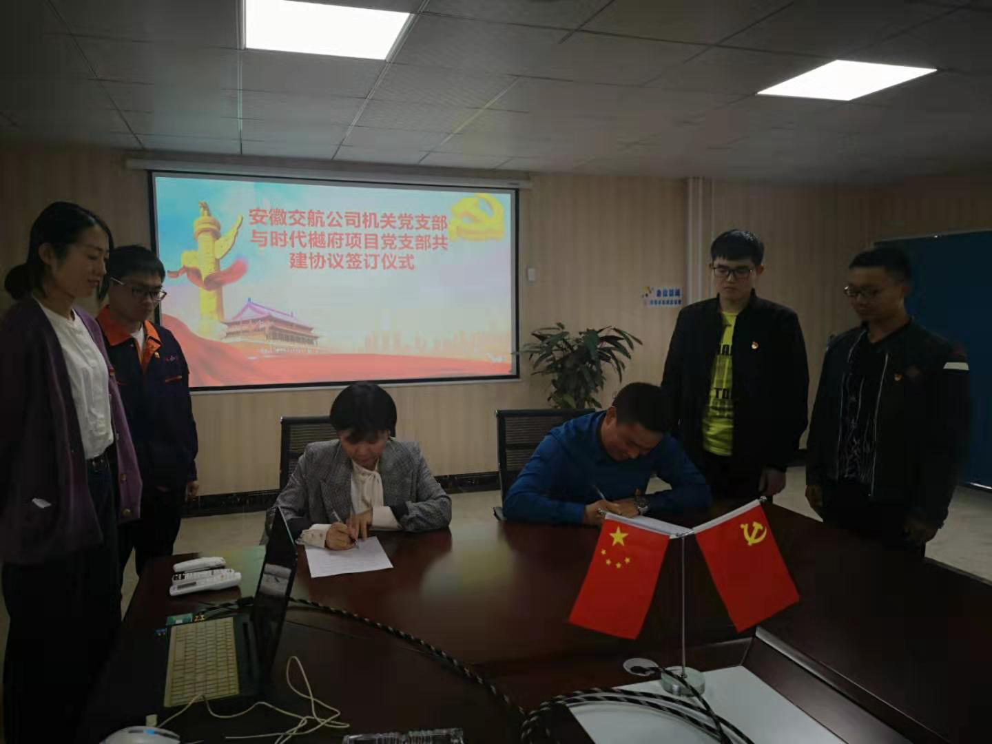 2019年10月16日,公司機關黨支部與時代樾府項目黨支部在滁州時代樾府項目新時代文明共建點開展舉行結對共建簽約儀式。