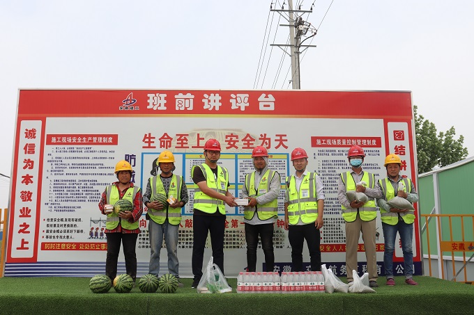 亳州PPP項目部始終堅持以人為本的管理理念,關心重視職工的身體健康和安全生產(chǎn)。在發(fā)放現(xiàn)場,項目領導班子首先向一線施工人員表達了“五一”節(jié)日的問候,隨后向大家宣傳了防暑降溫常識,囑咐他們在高溫下作業(yè)時一定要做好防暑降溫措施,增強自我防暑意識,保障各項工作安全有序進行。