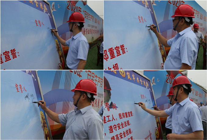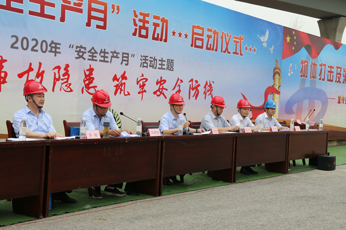 今年6月是全國第19個(gè)“安全生產(chǎn)月”,按照國家應(yīng)急管理部和安徽建工集團(tuán)統(tǒng)一部署,安徽交航在全公司范圍內(nèi)開展了2020年“安全生產(chǎn)月”活動(dòng)。6月1日,安徽交航公司聯(lián)合軌道TJ-03標(biāo)項(xiàng)目部在項(xiàng)目現(xiàn)場開展以“消除事故隱患、筑牢安全防線”為主題的安全月暨宣誓啟動(dòng)儀式,公司黨委副書記、總經(jīng)理、安委會(huì)主任方申柱出席儀式,公司有關(guān)領(lǐng)導(dǎo)、機(jī)關(guān)相關(guān)部門負(fù)責(zé)人、軌道項(xiàng)目部全體人員以及所屬各項(xiàng)目安全員參加儀式。公司副總經(jīng)理、安委會(huì)副主任劉朝發(fā)主持啟動(dòng)儀式。