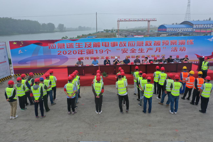 為響應“消除事故隱患,筑牢安全防線”2020年第19個“安全生產(chǎn)月”活動主題,提高全體施工作業(yè)人員的安全意識和技能,有效預防和消除事故隱患,提高應急逃生和防觸電意識,了解應急逃生及觸電事故救援措施。日前,利辛縣馬胡橋、邵渡口和G329項目在利辛縣S247馬胡橋改建工程施工現(xiàn)場開展應急逃生及觸電事故救援預案聯(lián)合演練。