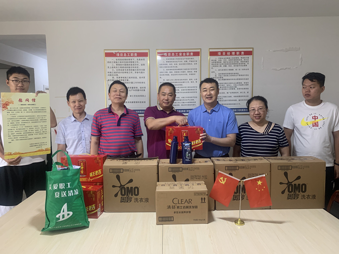 今夏,驕陽(yáng)似火,酷暑難耐,連日的高溫依然阻擋不了公司領(lǐng)導(dǎo)關(guān)心體恤一線職工的熱情,7月17日,安徽交航公司紀(jì)委書(shū)記、工會(huì)主席李楊帶隊(duì)深入基層一線項(xiàng)目部,親切看望奮戰(zhàn)在高溫一線的職工,并為奮戰(zhàn)在高溫一線職工送來(lái)“一份清涼、一份關(guān)懷”。