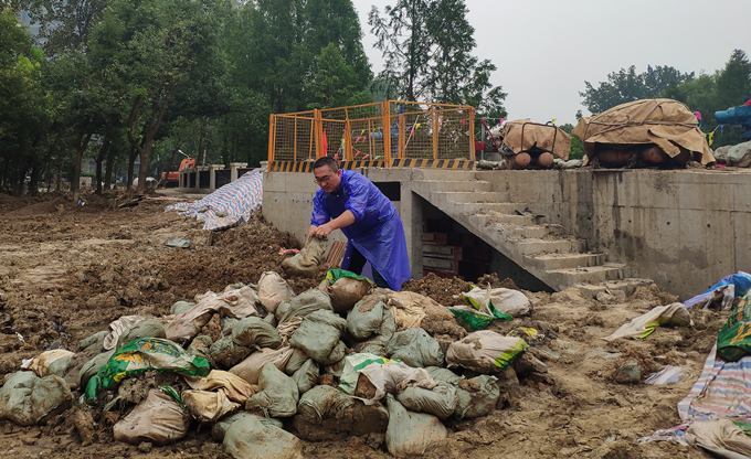 7月19日凌晨5時(shí)許,又是一夜的傾盆暴雨,董鋪水庫(kù)水位暴漲,南淝河多處發(fā)生河水倒灌,周邊許多小區(qū)受災(zāi)。當(dāng)日早上6時(shí),在接到緊急救災(zāi)指令,沈宏立即先行一步緊急調(diào)集項(xiàng)目庫(kù)存防汛物資趕赴集結(jié)點(diǎn),組織安排雨衣、雨鞋、救生衣的發(fā)放及編織袋、花雨布、鐵鍬、手套的分配,組織工人有序進(jìn)場(chǎng),指引車輛機(jī)械有序通行。哪里物資缺了,他馬上調(diào)配;哪里人手少了,他馬上協(xié)調(diào);哪里新來(lái)救援人員設(shè)備了,他馬上匯報(bào)安排……一項(xiàng)項(xiàng)工作有條不紊地在進(jìn)行,直到他把最后一件雨衣、最后一雙雨鞋讓給工人,而自己卻被雨水淋透發(fā)燒。最終,在當(dāng)日下午3點(diǎn)左右,沈宏帶領(lǐng)工友們完成了周邊受災(zāi)小區(qū)排澇和群眾疏散任務(wù),在晚上9點(diǎn)完成近300米堤壩拓寬和加固任務(wù)。