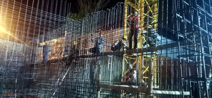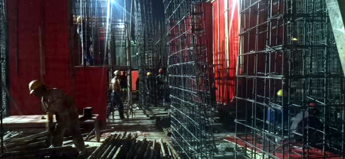 為加快施工生產(chǎn)進(jìn)度,項(xiàng)目部領(lǐng)導(dǎo)及管理人員、作業(yè)單位放棄休息日,發(fā)揚(yáng)“白加黑”的苦干實(shí)干精神,加班加點(diǎn),堅(jiān)守崗位??朔N種困難,戰(zhàn)勝多種不利因素,積極推進(jìn)施工進(jìn)度。項(xiàng)目部要求作業(yè)單位優(yōu)化施工組織,通過(guò)增大工作面、增加施工班組等多種措施,加快施工進(jìn)度。同時(shí),為保證夜間施工順利進(jìn)行,項(xiàng)目在符合環(huán)保部門要求的條件下,項(xiàng)目領(lǐng)導(dǎo)帶領(lǐng)一線管理人員實(shí)施夜間值班制度,每天由值班經(jīng)理帶頭,項(xiàng)目安全員、質(zhì)量員及棟號(hào)長(zhǎng)配合夜間施工生產(chǎn)管理。