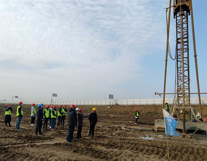 該工程水泥攪拌樁設計數量13391根,此次選取了5個區(qū)域30根樁進行試樁作業(yè)。為確保軟土地基處理工程施工順利進行,項目部還召開專題會議進行安排部署,明確各道工序的施工工藝,規(guī)范施工過程中的實際操作,確保人員培訓到位、設備狀態(tài)良好以及施工質量。