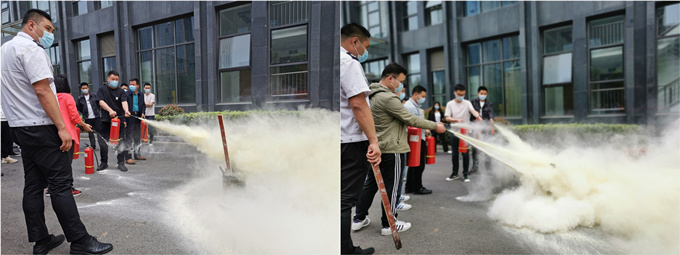 培訓(xùn)結(jié)束后,公司組織職工在一樓西側(cè)廣場(chǎng)開展消防應(yīng)急救援演練活動(dòng)。