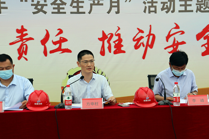 5月31日上午8點,安徽交航2021年“安全生產(chǎn)月”活動啟動暨宣誓儀式在引江濟淮項目部舉行。公司黨委書記、董事長、總經(jīng)理方申柱出席儀式并講話,公司主要領(lǐng)導(dǎo)、各部室負責(zé)人、業(yè)主方代表、監(jiān)理方代表、班組作業(yè)代表、引江濟淮項目人員以及參賽隊員等參加。公司副總經(jīng)理董雙武主持儀式。