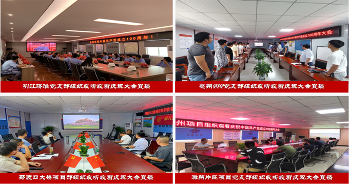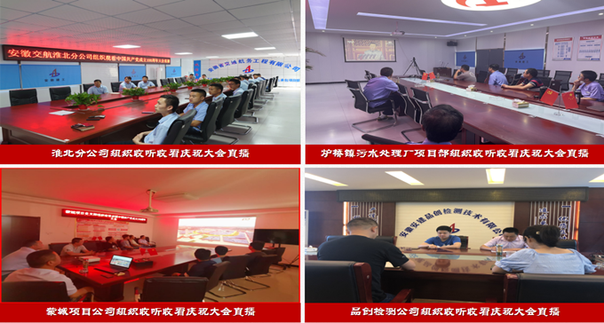 當(dāng)日上午8時整,公司黨委書記、董事長方申柱,黨委副書記、總經(jīng)理杜海峰等領(lǐng)導(dǎo),同機(jī)關(guān)干部職工一道懷著喜悅和激動的心情,齊聚在機(jī)關(guān)會議室認(rèn)真收聽收看大會直播,認(rèn)真聆聽習(xí)近平總書記的重要講話。公司所屬各黨支部、黨員職工分別在分公司機(jī)關(guān)、黨員活動室、項目部以及項目現(xiàn)場等不同場所,通過電視、網(wǎng)絡(luò)以及手機(jī)等多種形式觀看直播,共同慶祝中國共產(chǎn)黨百年華誕。