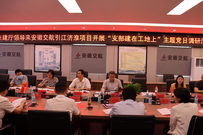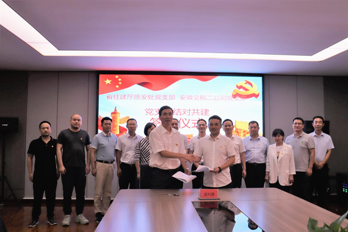 8月19日下午,安徽省住建廳工程質(zhì)量安全監(jiān)管處黨支部來安徽交航引江濟(jì)淮新時(shí)代文明實(shí)踐點(diǎn)開展“支部建在工地上”主題黨日活動,并與二公司黨支部簽訂結(jié)對共建協(xié)議。省住建廳工程質(zhì)量安全監(jiān)管處處長何以文、副處長陳鐘,三級調(diào)研員丁金穎、四級調(diào)研員董理論;公司黨委書記、董事長方申柱,黨委副書記、工會主席黃國平,黨委委員、副總經(jīng)理張瓊等領(lǐng)導(dǎo)參加活動并見證簽約。