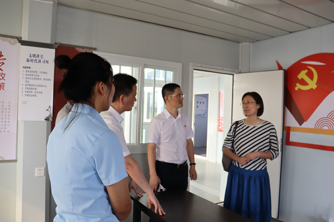 活動中,省住建廳質(zhì)安處領(lǐng)導(dǎo)參觀了引江濟(jì)淮項(xiàng)目部新時(shí)代文明實(shí)踐點(diǎn),聽取了公司新時(shí)代文明實(shí)踐點(diǎn)的建設(shè)由來、功能定位、建設(shè)意義以及活動開展情況的詳細(xì)介紹,著重了解了公司新時(shí)代文明實(shí)踐點(diǎn)“黨建領(lǐng)航提質(zhì)筑安工作”的創(chuàng)新做法以及設(shè)立農(nóng)民工監(jiān)督員的初衷,并對公司新時(shí)代文明實(shí)踐點(diǎn)建設(shè)給予了充分肯定。在隨后的座談交流中,雙方首先學(xué)習(xí)了《生命重于泰山——學(xué)習(xí)習(xí)近平總書記關(guān)于安全生產(chǎn)重要論述》,并圍繞“支部建在工地上”的主題交流和討論了項(xiàng)目黨建工作和新時(shí)代文明實(shí)踐點(diǎn)的創(chuàng)新做法。