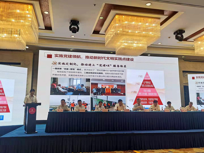 會上,方申柱通過PPT形式圖文并茂地介紹了安徽交航項(xiàng)目黨建工作經(jīng)驗(yàn)做法以及主要工作成效。在談及黨建工作經(jīng)驗(yàn)做法時(shí),方申柱從兩個(gè)大方面進(jìn)行了介紹:一是聚焦一個(gè)文明實(shí)踐。即以新時(shí)代文明實(shí)踐點(diǎn)為載體,通過整合四種資源、實(shí)施定制化服務(wù)、設(shè)立農(nóng)民工監(jiān)督員,高標(biāo)準(zhǔn)推動(dòng)提質(zhì)筑安走深走實(shí)。二是點(diǎn)亮“三個(gè)紅色”。即通過打造“紅色堡壘”、激活“紅色細(xì)胞”、編制“紅色紐帶”,充分基層黨組織的戰(zhàn)斗堡壘作用。