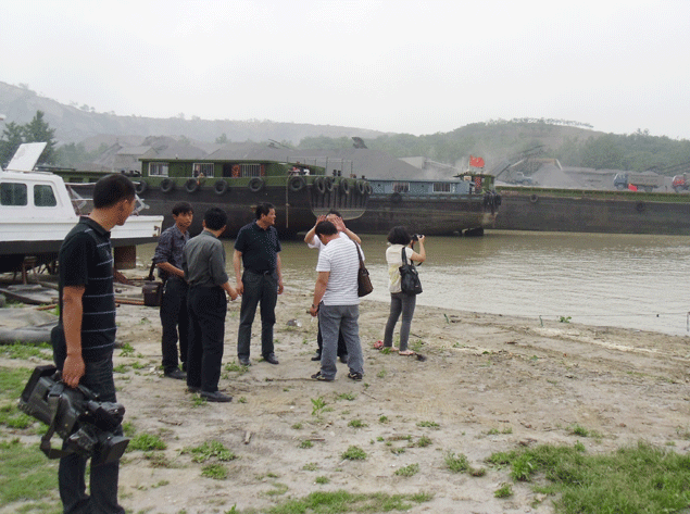 2013年5月23日,全椒縣電視臺記者在縣交通局副局長劉漢高、海事處處長李榮福的帶領(lǐng)下來公司滁河航道疏浚工程現(xiàn)場采訪,公司工會主席王永來、項目部技術(shù)負(fù)責(zé)人劉浩然陪同采訪。