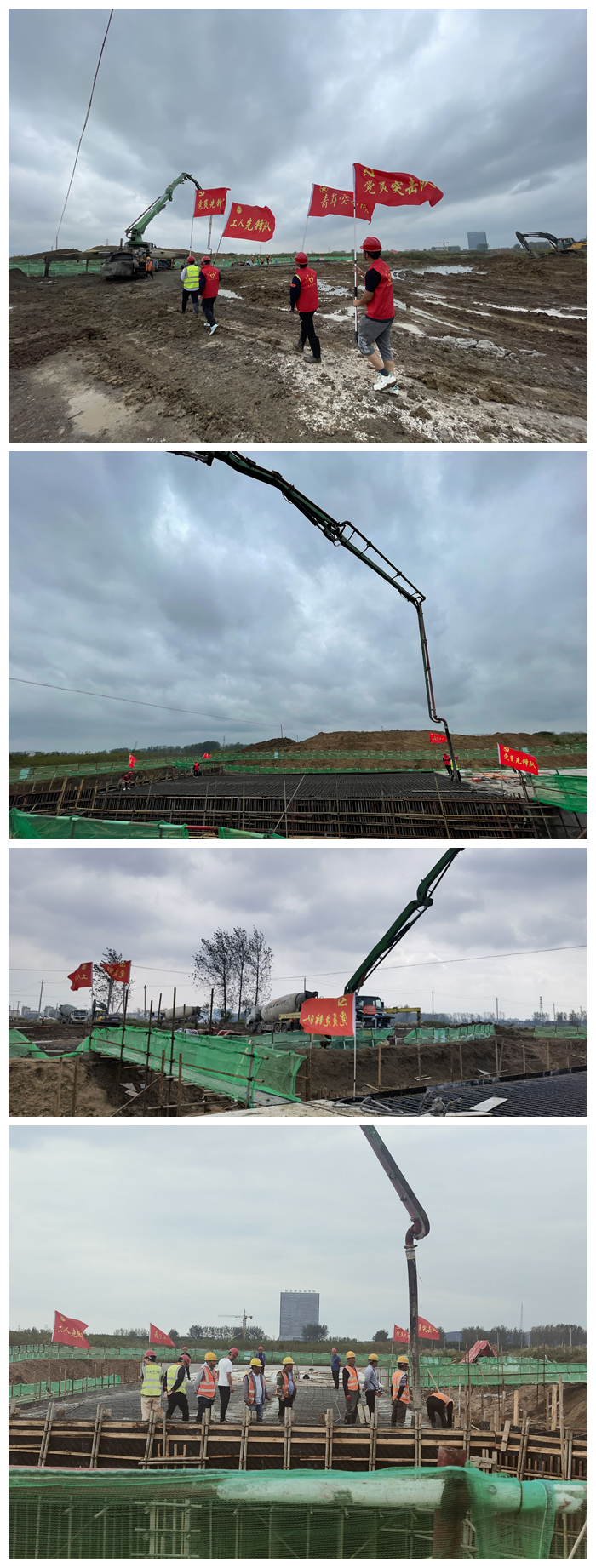 本次箱涵封頂,澆筑混凝土較多,且今年以來,項(xiàng)目接連遭遇征地拆遷、雨水較多等困難。項(xiàng)目部始終圍繞“學(xué)黨史、保安康、搶工期、爭一流”的勞動競賽主題,秉持“工期就是效益”的理念,充分發(fā)揮黨員先鋒引領(lǐng)作用,通過組建青年突擊隊(duì)等措施,號召黨員青年沖鋒在前,與工人同吃苦、共奮斗,確保項(xiàng)目工作如期完成。最終,通過10個小時的努力施工,充分發(fā)揮青年突擊隊(duì)、黨員突擊隊(duì)作用,箱涵封頂混凝土澆筑工作圓滿完成。
