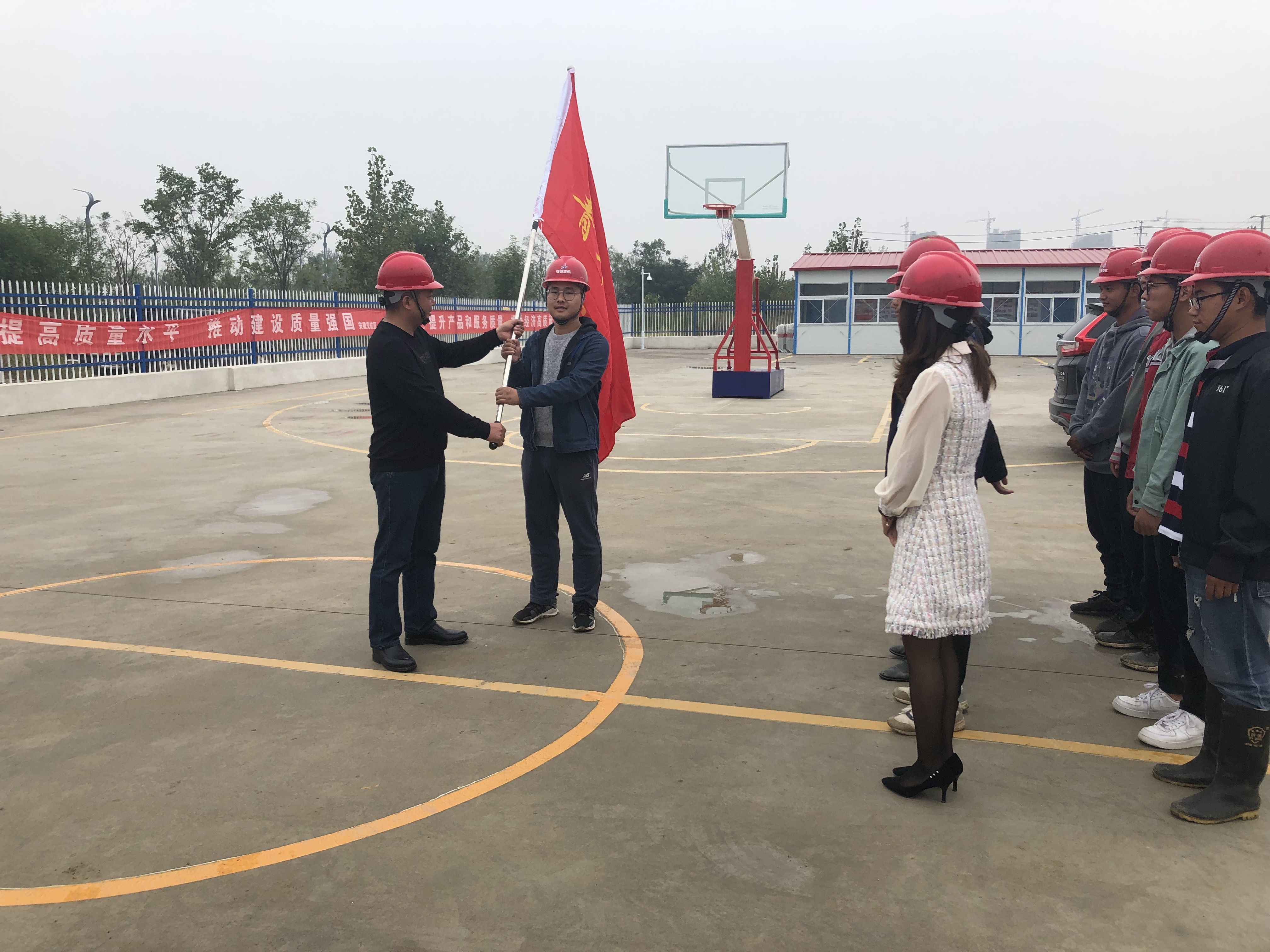 2019年10月10日,多金泗縣EPC項目部團支部組織開展青年志愿者授旗儀式,黨支部書記曹萬飛為青年志愿者授旗。