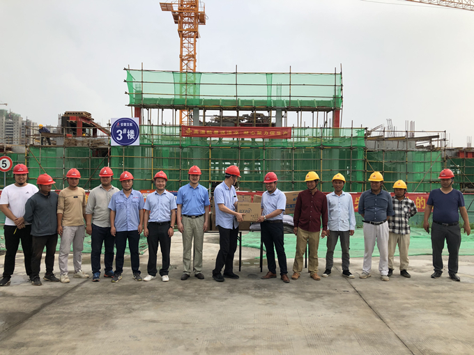 在項(xiàng)目現(xiàn)場(chǎng),吳紅星仔細(xì)詢問了項(xiàng)目部夏季防暑降溫工作開展情況,親切慰問了時(shí)代莊園項(xiàng)目一線管理人員及工友,親自發(fā)放了防暑降溫物品,并要求項(xiàng)目部將防暑降溫物品發(fā)到一線工人手中,將集團(tuán)的關(guān)懷落到實(shí)處。隨后,吳紅星詳細(xì)詢問了項(xiàng)目的開工時(shí)間、工期、進(jìn)度、造價(jià)等情況,并要求項(xiàng)目部在項(xiàng)目管理過程中充分利用信息化手段,切實(shí)提高項(xiàng)目的管理水平,做好信息化運(yùn)用的總結(jié),為安徽交航公司房建項(xiàng)目信息化管理提供基礎(chǔ)性的資料。