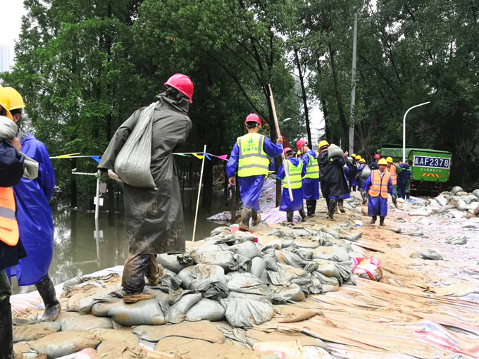 項(xiàng)目黨支部書記田龍全程指揮防汛抗洪工作,大家分工明確,積極主動(dòng)投身到防汛抗洪的工作中,一鍬一鍬挖,一袋一袋堆,扎出成百上千個(gè)沙包,堵在南淝河堤壩地勢低洼處,形成一道堅(jiān)實(shí)的防線,幫助當(dāng)?shù)厣鐓^(qū)排除險(xiǎn)情。