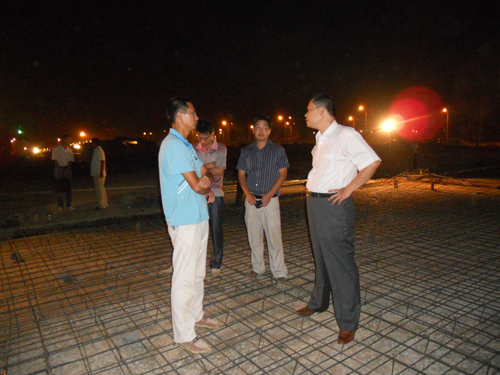 李總一行乘著夜色檢查施工現(xiàn)場(chǎng),公司總經(jīng)理助理、滁州市政務(wù)中心廣場(chǎng)項(xiàng)目部經(jīng)理方申柱詳細(xì)匯報(bào)了工程施工進(jìn)度、質(zhì)量安全措施情況,李總對(duì)項(xiàng)目部采取的一系列促進(jìn)工程進(jìn)度及質(zhì)量安全措施表示肯定,鼓勵(lì)項(xiàng)目部全體員工突出質(zhì)量意識(shí),加強(qiáng)隊(duì)伍建設(shè),牢牢把握安全生產(chǎn),和諧穩(wěn)定等五個(gè)關(guān)鍵點(diǎn)。希望大家團(tuán)結(jié)一心,繼續(xù)努力,真抓實(shí)干,作好各項(xiàng)工作,在即將到來的“中秋”、“國(guó)慶”雙節(jié),以優(yōu)異的成績(jī)體現(xiàn)公司精神風(fēng)貌。