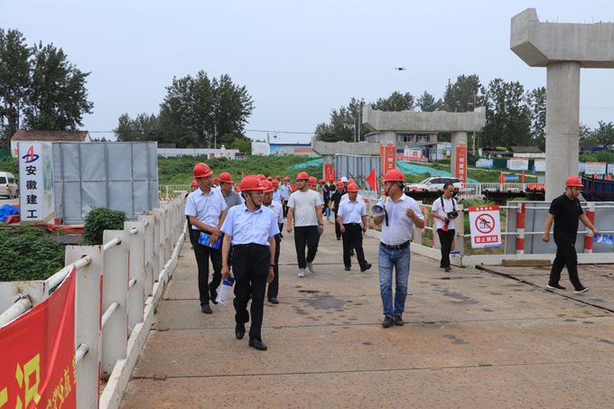 孫善豹一行直奔利辛縣馬胡橋施工現(xiàn)場(chǎng),認(rèn)真聽取了馬胡橋項(xiàng)目負(fù)責(zé)人關(guān)于項(xiàng)目概況、目前施工進(jìn)度以及最近高溫天氣下采取的防暑降溫措施的工作匯報(bào),并對(duì)項(xiàng)目部加快進(jìn)度保障措施以及在采取避開高溫時(shí)段施工的同時(shí)給工人發(fā)放防暑降溫物品的做法給予了肯定。孫善豹指出,在加快施工進(jìn)度的同時(shí)要保障在高溫天氣下作業(yè)安全。