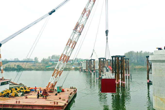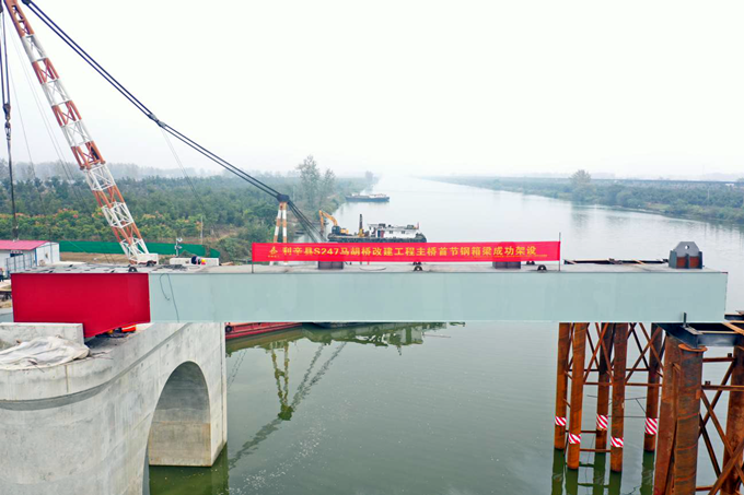 10月28日下午4點10分,隨著一節(jié)重達53噸的鋼箱梁穩(wěn)穩(wěn)地架設(shè)到馬胡橋4#主墩支座位置上,利辛S247馬胡橋項目首節(jié)鋼箱梁架設(shè)宣告成功,標(biāo)志著馬胡橋進入鋼箱梁“拼積木”階段,主橋上部結(jié)構(gòu)施工將進入“快車道”。