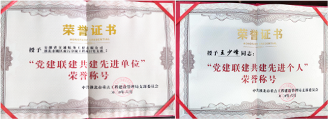 打鐵還需自身硬。項目部以文化活動為橋梁,助力項目精神文明建設(shè)。在慶祝祖國71周年華誕之際,項目黨支部帶頭組織職工開展了我與國旗合影、觀看愛國影片《八佰》以及觀看“五一”先進(jìn)人物報告會等一系列主題黨建活動,激發(fā)項目職工愛國情懷,樹立愛國主義思想。在建黨99周年期間,淮北雨污分流項目黨支部被中共淮北市重點工程建設(shè)管理局支部委員會評為“黨建聯(lián)建共建先進(jìn)單位”并授予榮譽(yù)稱號,優(yōu)秀黨員王少峰同志被評為“黨建聯(lián)建共建先進(jìn)個人”并授予榮譽(yù)稱號,為99周年黨慶交上了一份“不忘初心、牢記使命”的答卷。