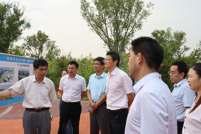 考察團(tuán)首先到徐州市進(jìn)行了考察,并在徐州市住建局相關(guān)領(lǐng)導(dǎo)的陪同下,通過實(shí)地察看、聽取介紹等形式,對(duì)徐州市政綠化建設(shè)、河道治理、城市中心游園綠化、水系建設(shè)、管理綠化以及配套設(shè)施建設(shè)等進(jìn)行了詳細(xì)考察。次日,考察團(tuán)實(shí)地考察了安徽交航公司承建的淮北市中湖礦山地質(zhì)環(huán)境治理PPP項(xiàng)目,詳細(xì)了解了中湖項(xiàng)目治理建設(shè)過程。
