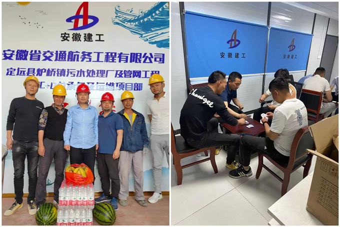 日前,定遠(yuǎn)縣爐橋鎮(zhèn)污水處理廠及管網(wǎng)工程項(xiàng)目部,給“五一”期間頭頂烈日、堅(jiān)守崗位的項(xiàng)目職工及民工兄弟送去慰問品,對(duì)他們的堅(jiān)持和奉獻(xiàn)表示感謝,并組織開展摜蛋比賽。