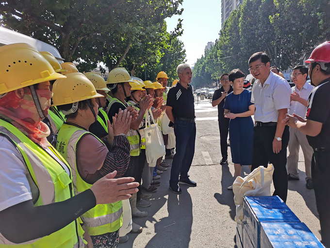 8月17日,淮北市人大及總工會代表到安徽交航雨污分流項目現(xiàn)場視察,看望慰問一線工人并發(fā)放了慰問品。