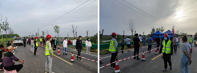 4月下旬以來,利辛縣疫情防控形勢愈發(fā)嚴(yán)重。4月26日7時(shí),在接到當(dāng)?shù)卣痛逦瘯?huì)協(xié)助開展疫情防控通知后,項(xiàng)目部立即安排青年志愿者配合當(dāng)?shù)蒯t(yī)務(wù)人員,協(xié)助布置核酸檢測點(diǎn),積極組織開展第二輪全員核酸檢測工作。