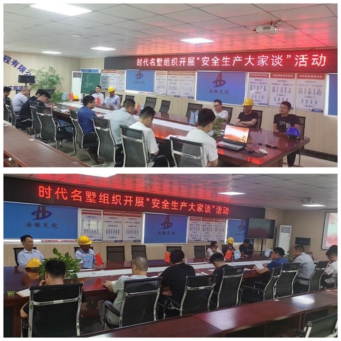 今年6月是第21個全國“安全生產(chǎn)月”。為了宣傳貫徹“安全生產(chǎn)月”活動、交流安全管理工作方法和經(jīng)驗,6月10日,滁州時代名墅項目部組織開展“安全生產(chǎn)大家談”活動。項目部全體管理人員、分包單位項目負責人及各勞務(wù)班組長參加活動。