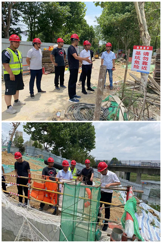 杜海峰一行實地查看了項目施工現(xiàn)場進展情況,認真聽取了項目現(xiàn)場安全生產(chǎn)的匯報,并對項目現(xiàn)階段安全生產(chǎn)工作給予充分肯定。杜海峰指出,要提高政治站位和責(zé)任意識,加大“安全生產(chǎn)月”以及“安全生產(chǎn)法”的宣傳力度,營造良好的安全生產(chǎn)環(huán)境。要按照“隱患就是事故”和“四不放過”的原則,持續(xù)開展各類安全專項整治行動,加強深基坑、腳手架、支撐體系等危大工程的管理,并做好沉井施工過程中的安全防護設(shè)置和下沉完畢后的標(biāo)準(zhǔn)化圍護及場地建設(shè)。要結(jié)合安全生產(chǎn)“集中整治六十天”方案要求,集中整治重點問題,加強監(jiān)督檢查,及時發(fā)現(xiàn)并解決工作中的問題與不足,確保安全隱患全部整改到位。要嚴(yán)格落實疫情防控措施,科學(xué)安排夏季高溫作業(yè),加強對一線工人的關(guān)懷,統(tǒng)籌做好疫情防控和防暑降溫工作。